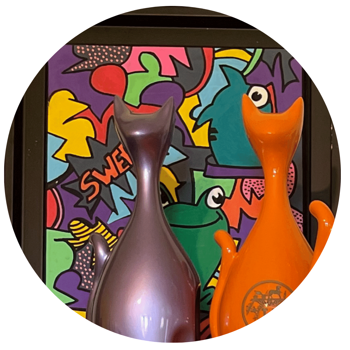 You have a very recognizable universe, colorful, peppy, fun, sparkling, with strong street art influences! Then there’s Lelocat, which is more sober, stylish and elegant, but always with that touch of madness that characterizes you.