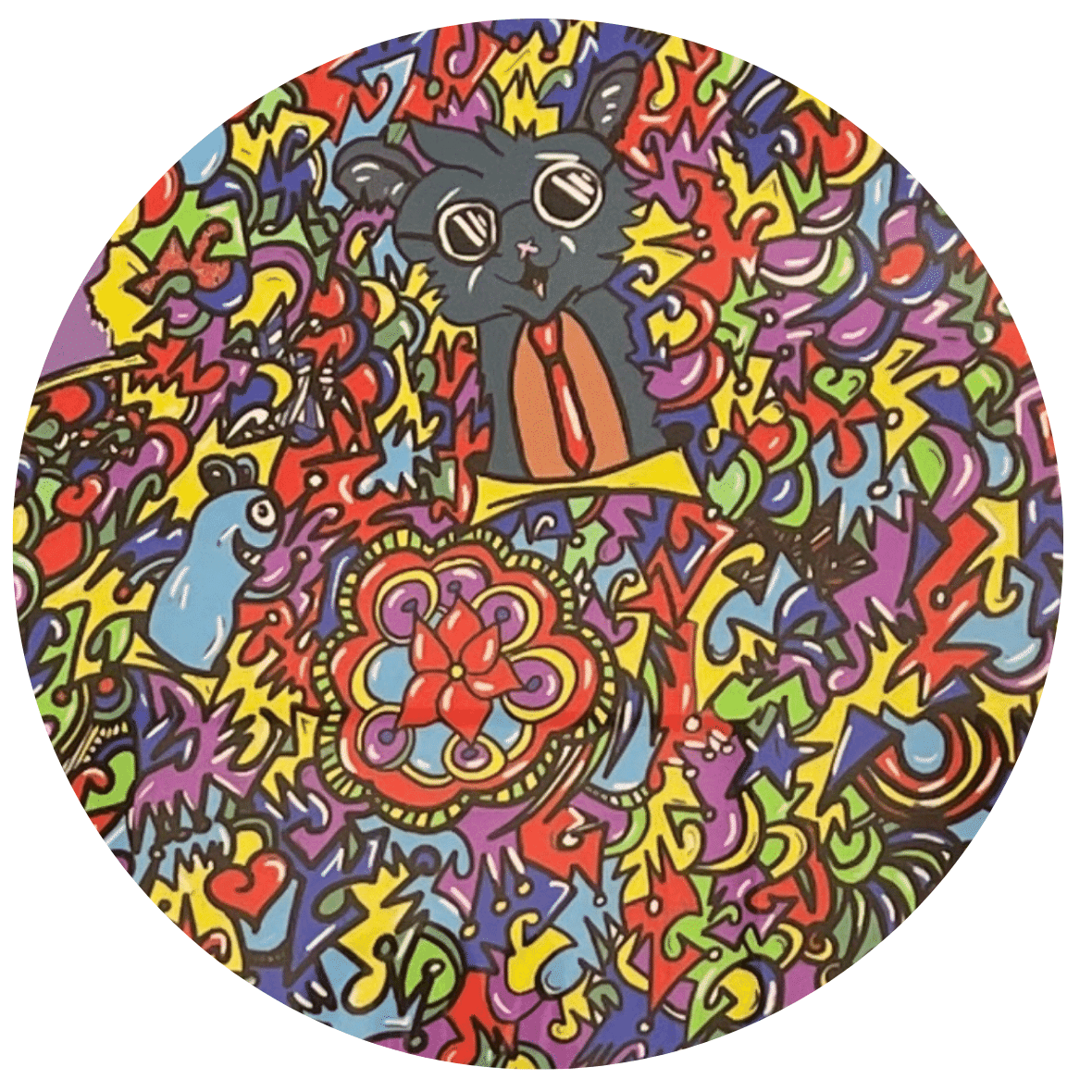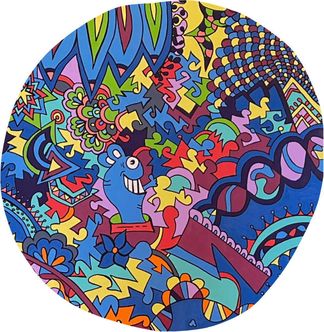 I love bringing happiness to people. It’s what I do naturally and it’s my way of being. I exude happiness and joie de vivre. I’m an eternal optimist. I don’t like sad or gloomy things… It was obvious to me that my works should be colorful. I’ve always been like that! I have a childhood friend who told me a few years ago: “The drawings you’re doing today, you were already doing in junior high on your diary in French class”. It’s one of the nicest compliments I’ve ever received, because it confirms that my art really is me, and always has been.