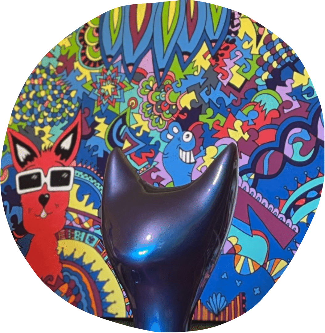 I’m a hard worker. I also love people. I’m altruistic, generous, kind and a bit of a Care Bear. I’m a bit offbeat in my approach to the world and to people. My workshop is an organized mess. A blend of creativity and rigor. In fact, all this can be found in my paintings and sculptures.