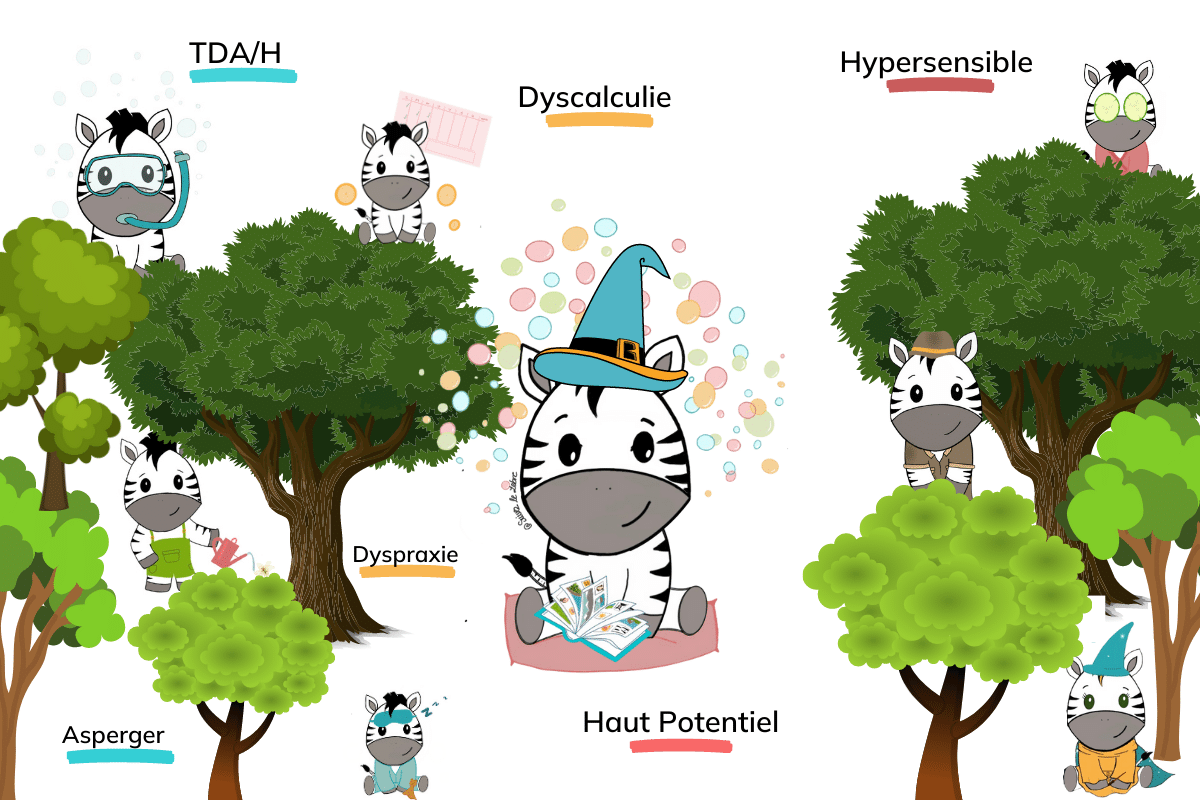 Today, Suivez le Zèbre specializes in5 atypias: HPI, hypersensitivity, DYS, ADD/ADHD and autism spectrum ASD.