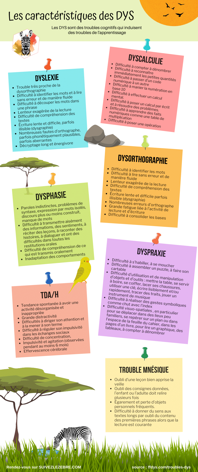 Merci au site source : ffdys.com qui a été une véritable mine d’or pour la création de cette infographie sur les DYS.